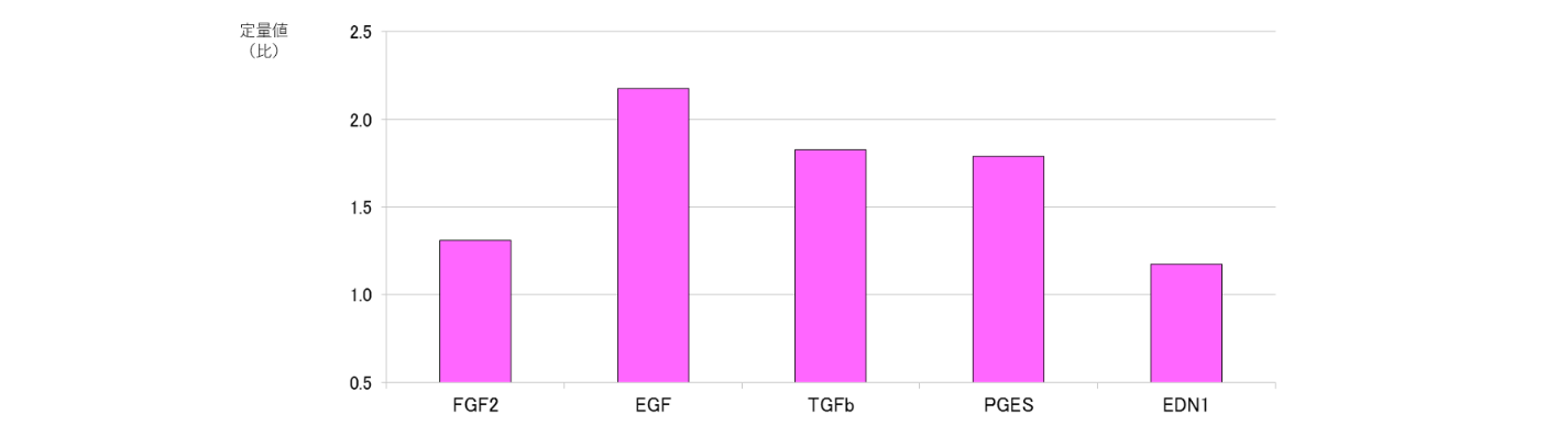 また、肌の張りと艶の元となっている、繊維芽細胞、ヒアルロン酸、エラスチンの合成力を高めます。更に紫外線による細胞死の抑制、傷の治りを早め、また、炎症を抑制的に制御する為、肌荒れ、炎症はもとより、傷や熱傷、アトピー性皮膚炎にも高い治療効果を期待されてます。